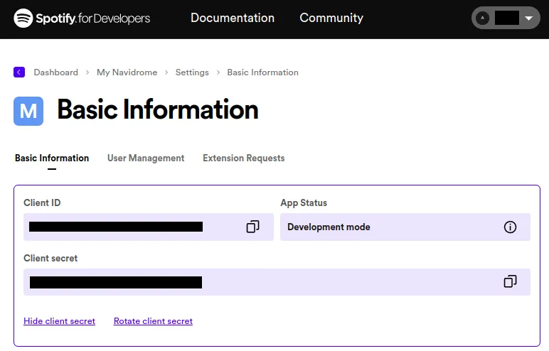 To obtain these values, create a free account in Spotify, then follow these steps: